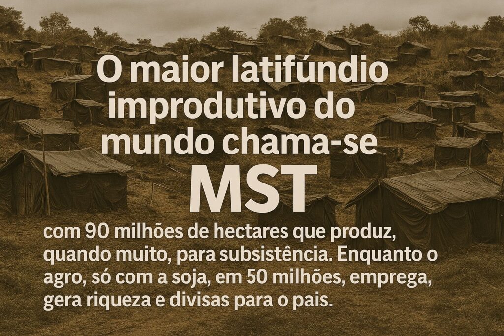 Está na hora de dar um basta. O Brasil não pode mais tolerar que áreas produtivas sejam invadidas sob o pretexto de uma reforma agrária fracassada. O verdadeiro latifúndio improdutivo brasileiro chama-se MST. Uma estrutura que recebeu, de forma legítima ou forçada, uma das maiores extensões de terra do planeta para produção de alimentos, mas que pouco ou nada contribui para a segurança alimentar, geração de empregos ou crescimento econômico do país.